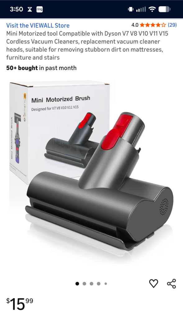 The above video is the first iteration of the motor brush car. It started as an attachment made for a Dyson vacuum. The attachment wasn’t too wide, was inexpensive, and already had the major components I needed – a motor, brush, and frame that holds both.