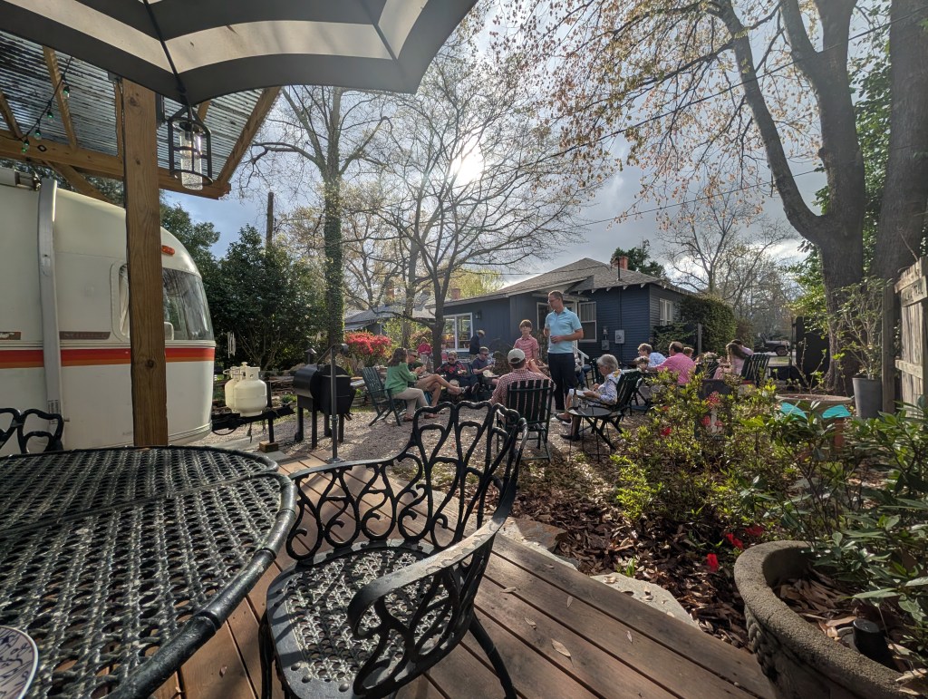 The celebration was a great success, with the weather cooperating very nicely. A brief rain the morning of the party cleared the pollen from the air.